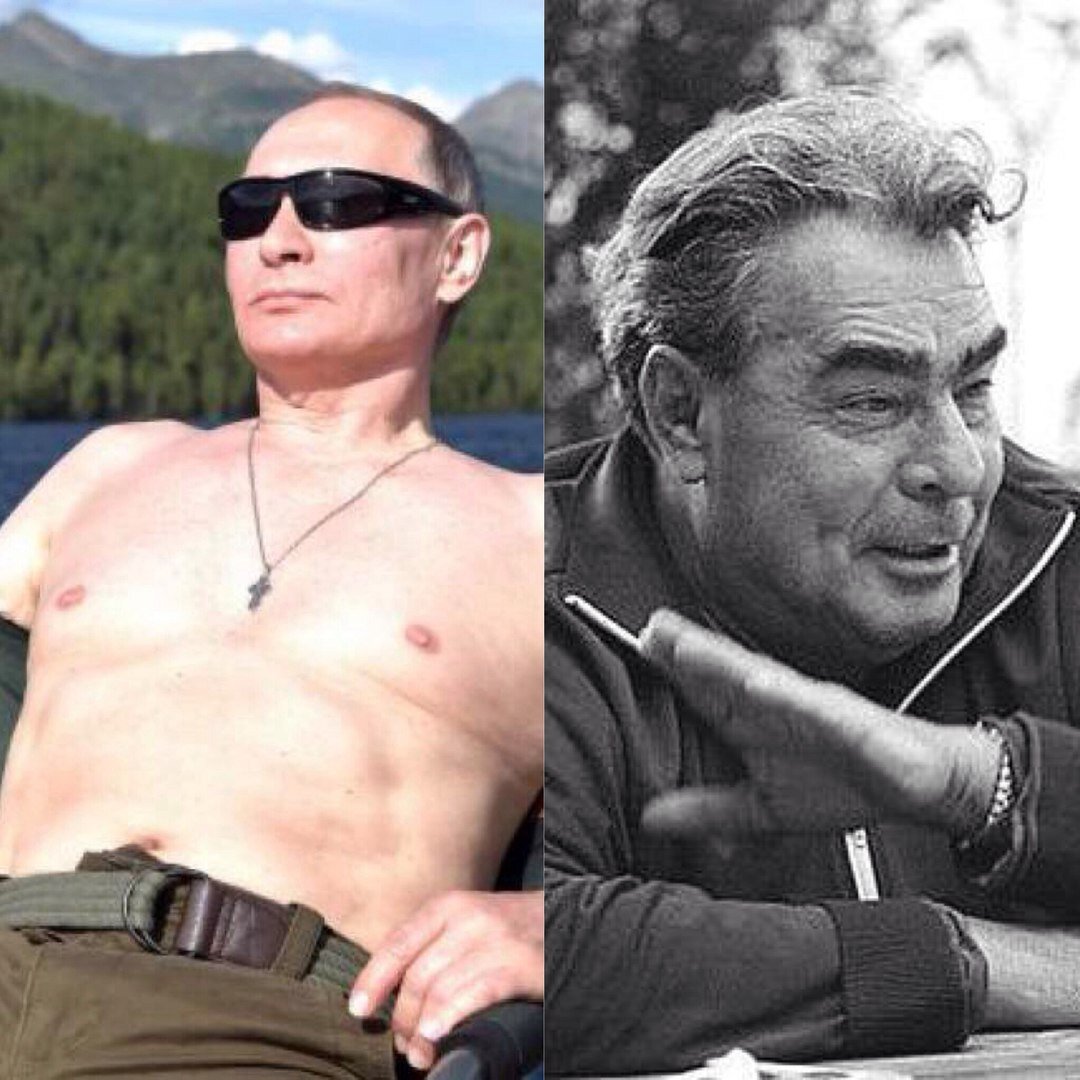 кто такие православные чекисты? что бы понять разницу, надо просто взглянуть на эти фото Брежневу не надо было "лепить горбатого" с крестиками, упругими телесами и прочей мишурой на телекамеру для быдла. За него сами говорили тысячи построенных при его правлении заводов, рывок в космос, доступный для каждого институт, изобилие на столе у каждого, кто честно работал. Брежнев был фронтовиком, ранение имел тяжелое, боевые ордена, участвовал в командовании армейскими и фронтовыми операциями. До войны Брежнев был инженером металлургом, организатором производства, и знал, что такое индустрия. Морщин своих мужских не стыдился. В общем, все совсем не так, как у Путина. С ботексной гладенькой мордочкой, изменой партийному билету из корыстных соображений, и дезертирством с поля боя в том печально памятном августе, и командованием стукачами. С разграблением достояния социализма и природных богатств России, и уничтожением промышленного потенциала страны. Кстати, совсем не факт, что на фото насто