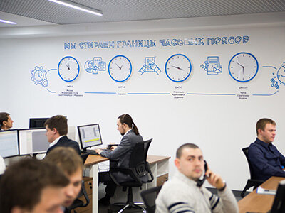 В завершение экскурсии гостей познакомили с направлением по поддержке мониторинга инфраструктуры, продемонстрировав информационную панель, на которой в режиме реального времени отображаются данные о работе объектов ИТ-инфраструктуры в Норильске, Мончегорске, Чите и других городах присутствия «Норникеля». Интересно, что эта служба не является типичной для ОЦО, она работает напрямую с производственными активами «Норникеля» в режиме 24/7, но выстроена по целевой модели мультифункционального центра обслуживания. Наличие данной службы в ОЦО подтверждает возможность эффективной организации работы любых сервисных подразделений по модели общего центра обслуживания.