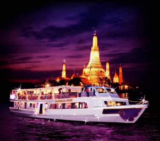 Это ли не сказка прокатится на красивом белоснежном лайнере по вечернему Бангкоку). Это достаточно известная и популярная экскурсия среди туристов королевства Тайланда. Отправляется лайнер с Ривер Сити, пристань около торгового центра, откуда отходит этот красивый белоснежный лайнер Princess. На лайнере ужин проходит по системе шведский стол. Играет красивая живая музыка. танцы. Изумительный вид на дворцы, огромный мост . Красивого Вам отдыха)