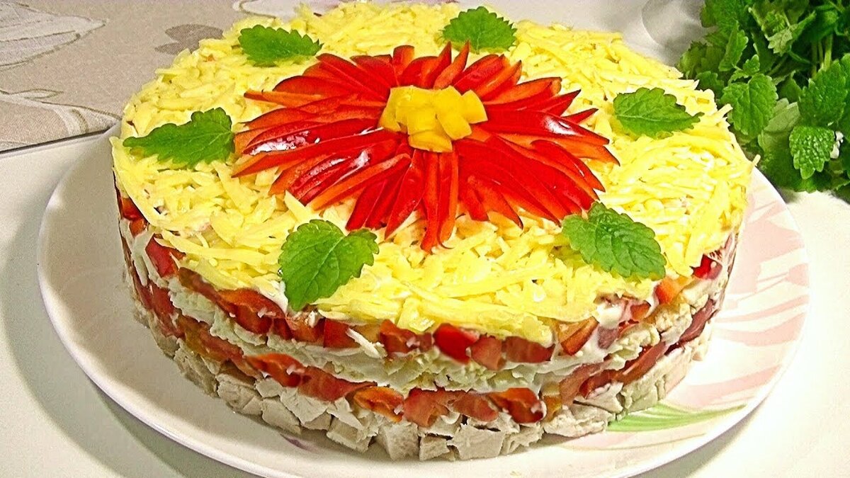 Предлагаю вашему вниманию видео-рецепт прекраснейшего салата ,который имеет название "Астра". Такой салат украсит любой праздничный стол. Этот салат готовится очень просто, а получается очень красивый и потрясающе вкусный салат. Получается нежный,вкусный,сочный,советую всем!!! Моя семья в восторге от этого салата! ******************************************************************************************** Продукты,для приготовления нашего салатика: 1 слой: курица отварная 2 слой: помидоры 3 слой: чеснок 4 слой: яйца 5 слой: болгарский перец 6 слой: сыр Салат можно дополнить чесночными сухариками , с сухариками салат получится ещё вкуснее и пикантнее. А как салатик "Астра" приготовить ,я вам покажу в видео:) ********************************************************************************************* Не забывайте ставить лайки и подписаться на мой канал:) ********************************************************************************************* ВИДЕО-РЕЦЕПТ: ****************