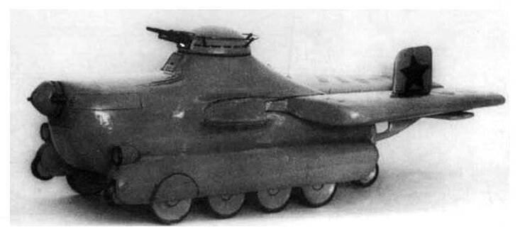 Танк МАС-1 (Малый авиационный Смалько) или ЛТ-1 (Летающий танк) был действительно феноменальной разработкой для СССР. Как и многие другие спорные проекты, ход проекту МАС-1 дал маршал Тухачевский. Необходимость в подобной машине была обоснованной: не было ни вертолетов, ни БМД, чтобы поддержать свои десантные войска. По идее, танк должен был парашютироваться из огромных транспортных самолетов Калинина (еще один проект, поддержанный Тухачевских) и преодолевать, таким образом, реки, минные поля и линии укреплений.