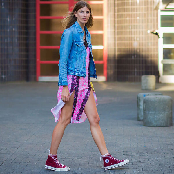 С чем носить кеды? Конечно, с джинсами или спортивными брюками. Возможно, с шортами. Идеи хорошие, но слишком банальные. А что если попробовать... ...надеть кеды с длинным платьем «Летнее развевающееся на ветру платье в пол — и кеды? Какая-то несуразица. Лучше надеть балетки или сандалии», — скажете вы. Сочетать нарядное вечернее платье и спортивную обувь — это не самое удачное решение, а вот добавить кеды в повседневный образ с длинным сарафаном из легкого хлопка — другое дело. Цвет кедов может как перекликаться с оттенком или принтом платья, так и быть ярким акцентом в образе. К примеру, модница на фото примерила черное платье с красными кедами Converse. ...сочетать кеды и шляпу Надеваем шляпу — и получаем романтичный и элегантный аутфит. Носим кеды — демонстрируем непринужденный look в спортивном стиле. Соединяем шляпу и кеды в одном образе — и наслаждаемся классным нарядом для весенне-летних путешествий. Заодно берем на заметку стильную идею от блогера Denisia: сочетаем свободные