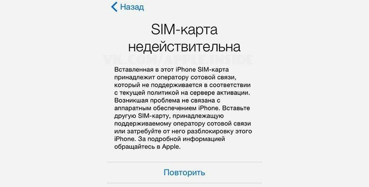 Почему возникает ошибка«SIM-КАРТА НЕДЕЙСТВИТЕЛЬНА» на Iphone