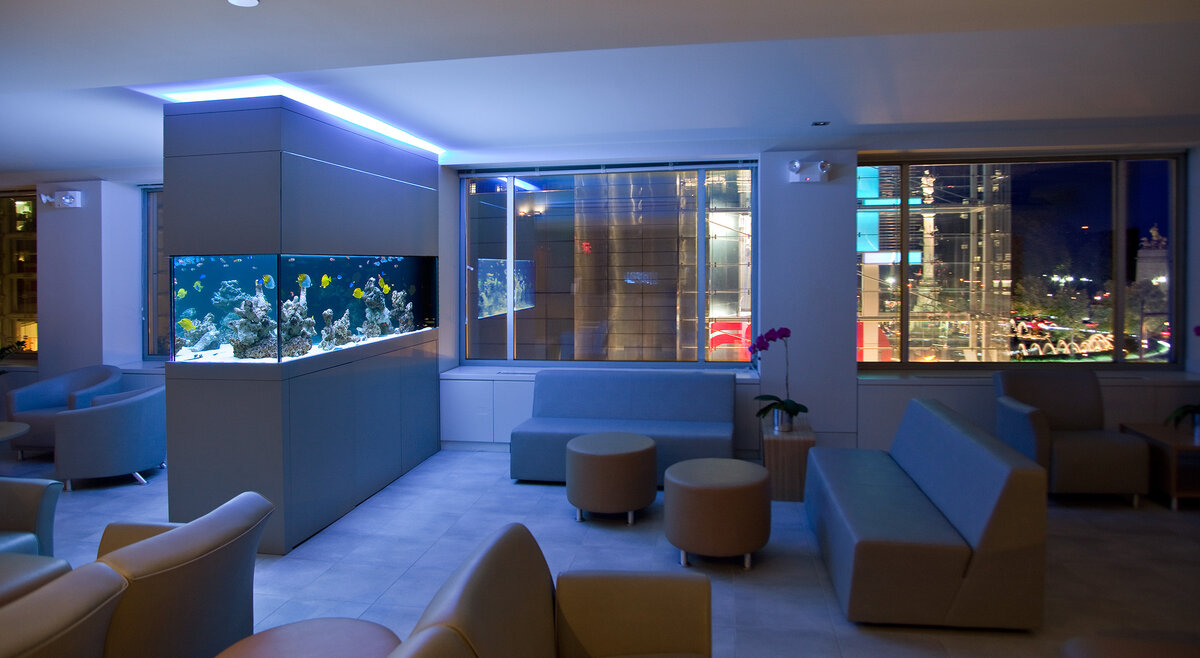 Пол в вашей квартире может без труда преобразить красивая паркетная доска и шикарный ковер, постеленный на нее. А вот скучные и пустые стены помещения можно украсить при помощи аквариума. Давно прошло то время, когда аквариум с декоративными рыбками был обычной, ничем не примечательной коробкой, сейчас же, его зачастую используют для украшения и обновления интерьера помещения, он даже стал неким предметом искусства, которым без устали восхищаются сами хозяева дома и, конечно, гости. В этой статье мы и расскажем вам, как можно преобразить интерьер дома или квартиры при помощи простого аквариума. Первым делом нужно решить, где именно вы разместите эту декоративную «вещицу». Его можно поставить на одиночную тумбу, встроить в стену или в мебель. Очень оригинальным решением стало бы встраивание аквариума в проем в стене между двумя смежными комнатами. Этот способ поначалу может показаться вам слишком сложным и чересчур муторным, но это того стоит, ведь потребуется только лишь ваша фантазия