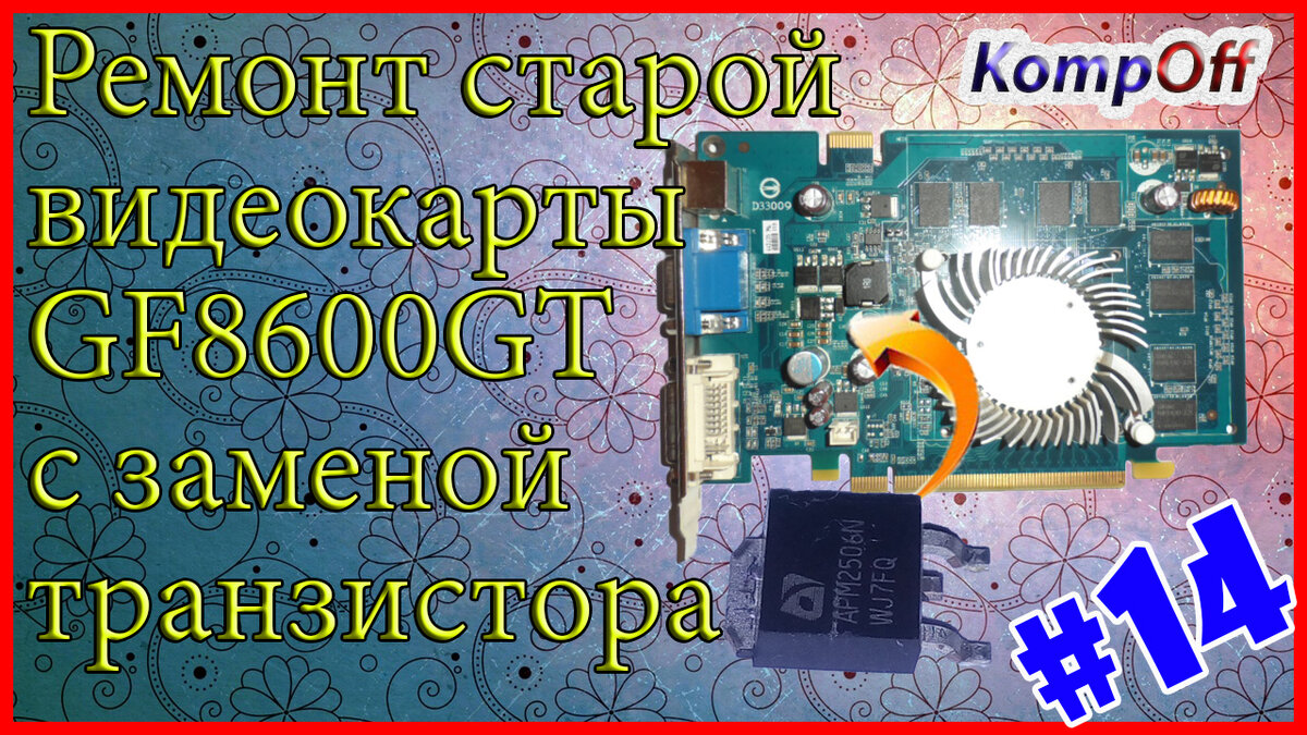 Ремонт видеокарты GF8600GT с заменой транзистора. Ремонт видеокарты своими руками Всем привет! У меня появилась проблема, перестал включаться мой компьютер. Нажимаю на кнопку включения, кулер начинает крутиться на мгновение и тут же останавливается. В чем же причина. Причина скорее всего в коротком замыкании в одном из компонентов пк, из-за которого бп уходит в защиту. Делает он это для того, чтобы не сгорело еще больше деталей. Как найти поломанную деталь? Подпишись на канал и вступи в мои группы: Ссылка на группу в вк: https://vk.com/kompoff_pavlodar Ссылка на группу в ок: https://ok.ru/prokomp ******************************************************** ссылка на мой канал: https://www.youtube.com/channel/UCft7wPzYprpVN8jQ4tjPaaA