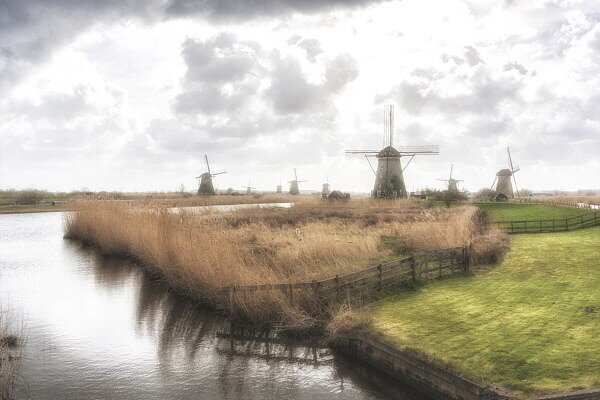 Название страны Нидерланды не зря дословно означает «нижние (или низкие) земли»: это действительно прибрежные низменности в дельтах многочисленных рек. Половина территории лежит ниже уровня моря. Голландцы отвоевывают у моря сушу, строя дамбы и осушая полученные польдеры. Большой проблемой становится защита от наводнений и дренаж. Голландский пейзаж обычно ассоциируется с двумя составляющими: тюльпанами и ветряными мельницами. И туристы, приезжающие в Нидерланды, хотят увидеть и то, и другое. Самое большое скопление старых мельниц находится у деревни Киндердейк километрах в 15 к востоку от Роттердама. Это одна из самых популярных голландских достопримечательностей. Система из 19 ветряков была создана ок. 1740 г. для того, чтобы силой ветра поднимать воду, предохраняя польдер от затоплений. Добиться полного контроля за уровнем воды не удалось, наводнения время от времени случались, но удалось создать неповторимый, запоминающийся пейзаж. Само название местности Киндердейк тоже по