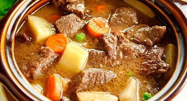 ПОНАДОБИТСЯ: ~Картофель-600 гр ~Говядина-600 гр. ~Морковь средняя-2 шт. ~Лук репчатый средний-2 шт. ~Чеснок-2 зубчика. ~Сливочное масло-120 гр. ~Соль,специи для мяса по вкусу ~Масло подсолнечное для жарки ~Вода-450 мл. ~Лавровый лист-4 шт. СПОСОБ ПРИГОТОВЛЕНИЯ: Мясо промыть,нарезать кусочками.Обжарить на масле.Посолить,добавить специи.Картофель вымыть,почистить,нарезать крупными кубиками,посолить,добавить очищенный и измельченный чеснок.Морковь и лук почистить,нарезать средними кусочками.Заполнить картофелем 2/3 каждого горшочка(всего 4 шт.)Сверху положить мясо,лук и морковь.В сковороде,где жарилось мясо,прокипятить воду и влить этот бульон в горшочки по не многу.Положить по кусочку масла и лавровому листу в каждый горшочек.Накрыть крышкой,запекать в духовке при 200 градусов 1 час 20 мин. Приятного аппетита!