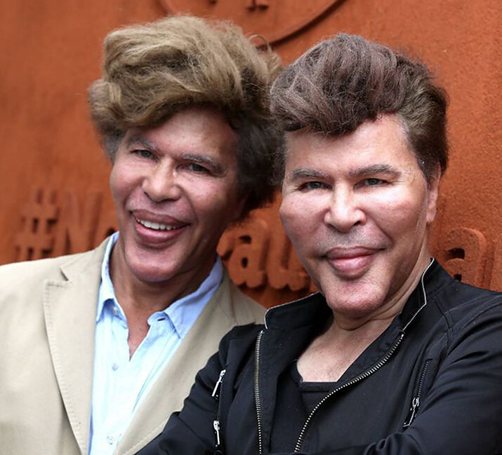 Представляю вашему вниманию Игоря и Гришу Богдановых, французские телеведущие родом с России. Им под 70 лет. Лечь под нож, было их добровольным решением, не зря решились, вон какие красавцы получились) Разве я не прав?) Конечно нет. До этих перевоплощений, эти дедушки выглядели намного приятнее . Глядя на них встает вопрос, ну зачем? Все просто, эпатаж. Ведь это не нормально делать с собой такое, но если личность с вагоном комплексов(ведь невозможно сделать, такое от большой любви к себе, там явно произошли сбои в психике) и не обладает особыми талантами, которые способны вытащить их на один уровень с селебрети, тогда таким людям приходит в голову привлечь внимание общественности с помощью пластики вспомним того же Кончиту или Руки базуки. Это разве от большого ума? Нет. Как то раз, один ведущий произнес интересную цитату которая касается таких людей "Говорят, что отец Паганини, закрывал его в комнате не давал играть на скрипке, бил и появился великий скрипач, но не всем так везет