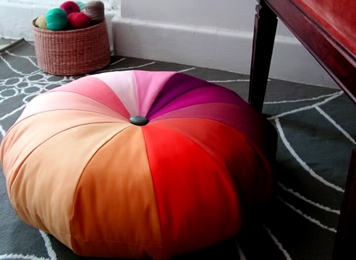 Маленький уютный пуфик украсит интерьер любого дома. Сегодня мы расскажем вам, как сшить его из лоскутков своими руками. В этом мастер-классе вас ждет пошаговый урок, с помощью которого вы научитесь делать пуфики даже из обрезков ненужной ткани, оставшейся от других поделок. Ранее мы уже рассказывали вам, как работать в технике пэчворк. Если вы никогда раньше не шили из лоскутков, советуем прочитать этот материал: в нем мы рассказываем, как скреплять детали правильно, и что потребуется для освоения этой техники. Также советуем посмотреть любой из мастер-классов на эту тему, которые мы публиковали ранее. Если вы новичок – это вам пригодится, ведь пуфик шьется по той же самой технологии. Что нам понадобится? Чтобы сделать действительно хороший пуф, лучше выбирать ткань поплотнее. Тонкий ситец тут не подойдет. Но если вы шьете заготовки для пуфика из обрезков старых тканей, которые не обладают желаемой прочностью, сделайте каждый лоскут двойным. Для этого нужно подготовить каждую деталь з