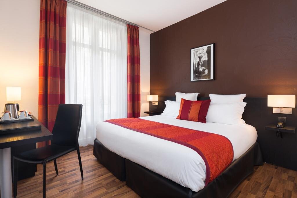 Описание Отель Massena Hotel находится в центре Ниццы, от солнечного пляжа всего в 200 метрах. К услугам постояльцев 110 звукоизолированных номеров, в каждом из которых имеется мини-бар, кондиционер, бесплатный доступ в интернет, телевизор, ванная комната. В некоторых номерах есть также балкон или терраса. Каждое утро гостям этого отеля предлагается вкусный завтрак "шведский стол". Все желающие могут заказать напитки в стильном баре отеля. По запросу осуществляется обслуживание номеров.