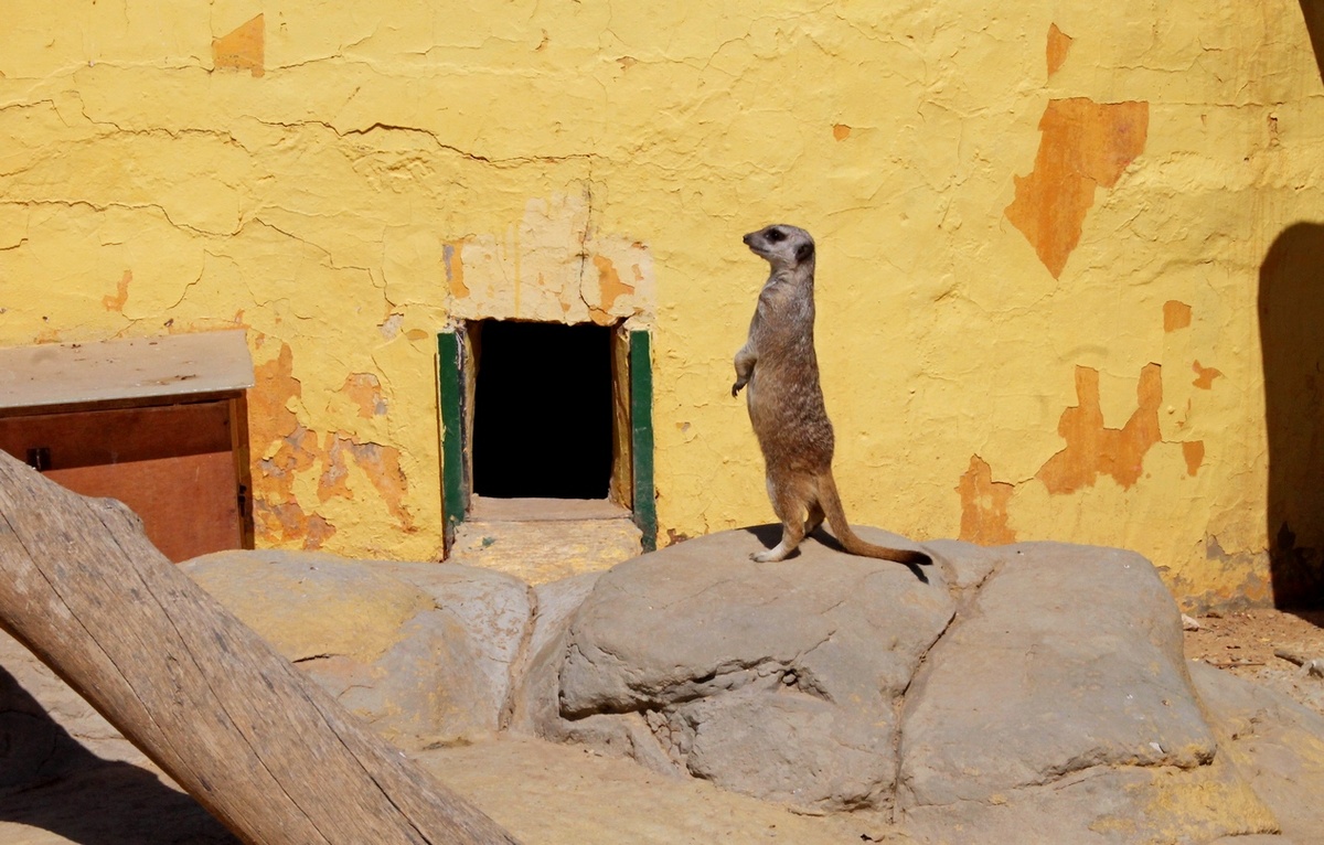 Эти симпатичные и юркие зверьки обитают в пустынных районах Южной Африки. Их примерный вес не превышает 900 граммов, хотя на вид дашь больше. Сурикаты живут колониями, в которых насчитываются до 30 особей. Колонии обитают, как правило, в глубоких норах. Старший член группы обычно осматривает территорию на случай приближения врагов-хищников. Если есть опасность, дозорный оповещает сородичей резким свистом. Кто же является врагами сурикатов? Прежде всего, хищные птицы, шакалы и змеи. Сами же сурикаты питаются насекомыми, скорпионами, ящерицами, птенцами и птичьими яйцами. Как правило, самка приносит в одном помете от 2 до 5 детенышей. Беременность суриката продолжается два с половиной месяца (порядка 70-77 дней).