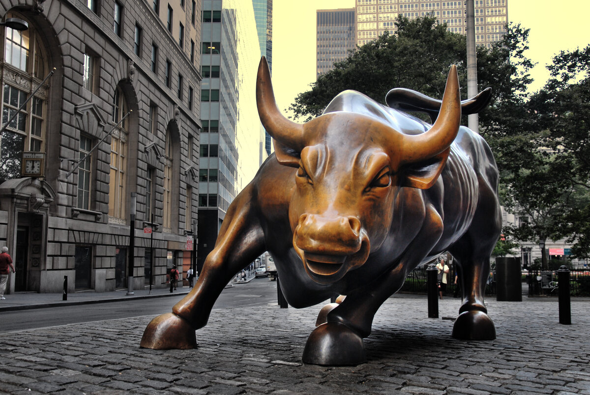 Известная бронзовая скульптура «Атакующий бык» (или Бык Уолл-стрит) - талисман Уолл-Стрит. Он был создан итальяно-американским художником Артуро Ди Модикой, желавшим, чтобы его работа стала символом силы и надежды, после краха фондового рынка в 1987 году. История «Атакующего быка» крайне необычна. Артуро работал над ним в течение почти трех лет в своей студии на Кросби-стрит в Сохо (район Нью-Йорка). Это самая грандиозная и массивная работа скульптора на сегодняшний день. Бык настолько огромен, что его пришлось отливать по частям, а затем сваривать и дорабатывать вручную. По окончании работы в 1989 году, бык весил более трех с половиной тонн и составил около 5,5 метров в длину. Артуро Ди Модика вложил в него 350 тысяч долларов собственных накоплений. В ранние утренние часы пятницы, 15 декабря 1989 года, Артуро, с помощью 30 друзей и арендованного крана, погрузил быка на бортовой грузовик и поехал в финансовый район Манхэттена, чтобы отгрузить его на Брод-стрит прямо напротив Нью-Йоркс