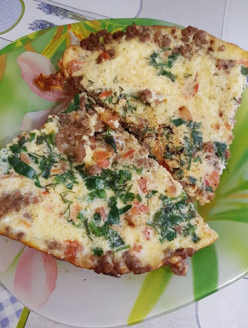 Воздушный мясной омлет можно готовить в любое время дня и ночи! Он хорошо подойдет как на завтрак, так и на ужин! Итак, приступим к приготовлению! Ингридиенты: Яйца-4,5 штук; Молоко- 100 мл.; Фарш-200гр.; грибы по вкусу (жаренные с луком) томаты-1шт.; сыр - 50 гр.; соль, перец; зелень. Берем 4 яйца, предварительно промыв и посушив их, разбиваем в миску , добавляем соль, сахар, перец, молоко , томаты очищенные и нарезанные кубиками. Отдельно жарим мясной фарш с луком и грибами минут 10, затем добавляем нашу смесь посыпаем зеленью и накрываем крышкой. Готовим омлет на достаточно медленном огне минут 20, затем открываем крышку и накладываем на тарелки вашим родным и близким. Приятного аппетита! Подписывайтесь на мой канал. Я буду Вас радовать необычными рецептами! А так же читайте мои предыдущие рецепты Обалденные чебуреки Яичница, Господа