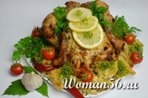 В рецепте описано как запечь курицу в духовке целиком. Такое блюдо можно с гордостью поставить на стол, оно не кажется повседневным, красивая золотистая тушка смотрится внушительно, переливаясь всеми оттенками золотистого цвета. Запеченный картофель - приятное дополнение, классический овощной гарнир понравится всем. Если говорить о технологии процесса приготовления, то его можно охарактеризовать всего одной фразой - проще простого. Майонез - волшебный продукт, его присутствие заставит отказаться от сложных маринадов и экзотических соусов. Ингредиенты рецепта: Как запечь курицу в духовке целиком – рецепт с фото Запекают куриные тушки, которые ранее не подвергались замораживанию. Охлажденную курицу моют, а потом тщательно протирают бумажным полотенцем. Курицу со всех сторон натирают солью. Смешивают молотый перец с сушеными итальянскими травами, равномерно распределяют приправы по тушке, не забывая о внутренней части. Набор итальянских трав можно заменить сушеным укро