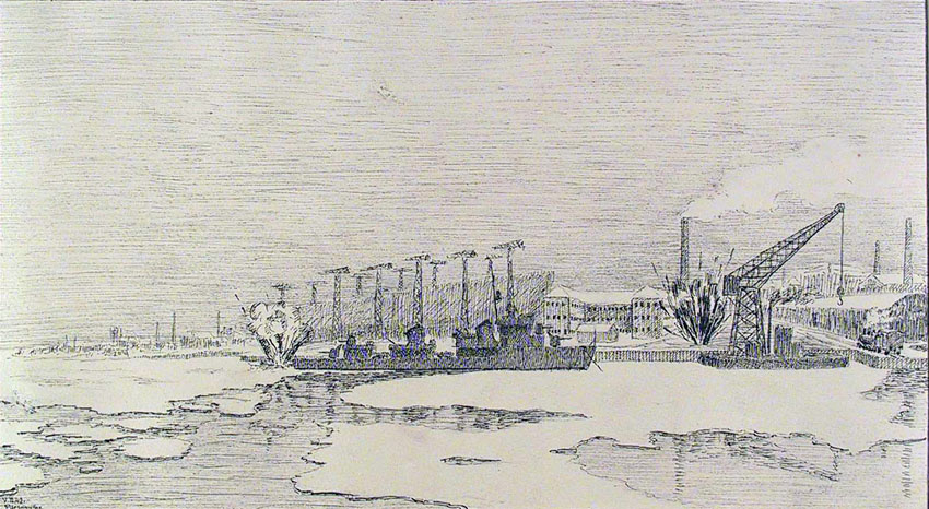 Интересна "тень" недостроенного корпуса на стапеле - по идее , это должен быть линкор.