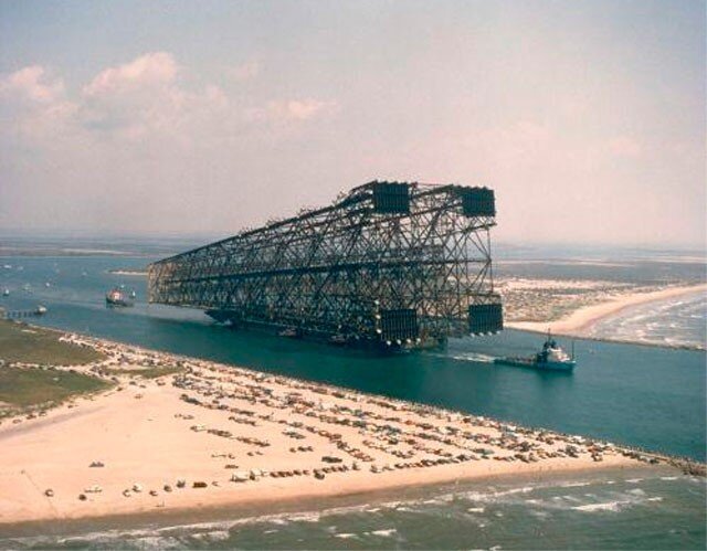 Вот например перевозка нефтяной платформы (Bullwinkle Oil Platform) в Мексиканский залив в 1988. Вы только посмотрите на размеры.