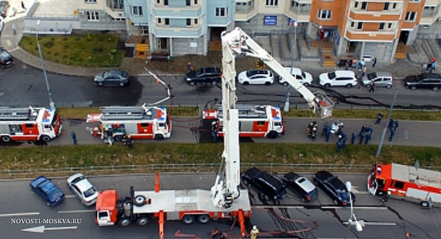 Непривычную и зрелищную картину могли наблюдать недавно обитатели высотных домов на Люберецких полях в Районе Некрасовка на юго-востоке Москвы. Сюда одновременно приехало большое количество спасательной техники, в том числе и платформа с огромной стрелой-подъемником. Как выяснилось, спасатели Московского МЧС отрабатывали свои действия на реальной местности – отрабатывали навыки тушения пожаров на верхних этажах многоэтажных зданий. В ходе тактических занятий была отработана сложная схема подачи воды для ликвидации возгораний на высоту примерно до 50 метров путем объединения в одну цепь нескольких мобильных насосных станций. Согласно легенде учений, пожар произошел в результате замыканий проводки на техническом этаже в служебном помещении, где располагаются системы управления домовыми коммуникациями. Пожарным необходимо было доставить средства тушения пожара на верхний этаж с использованием как специальной техники, так и живой силы. По словам начальника учений, они прошли успешно.