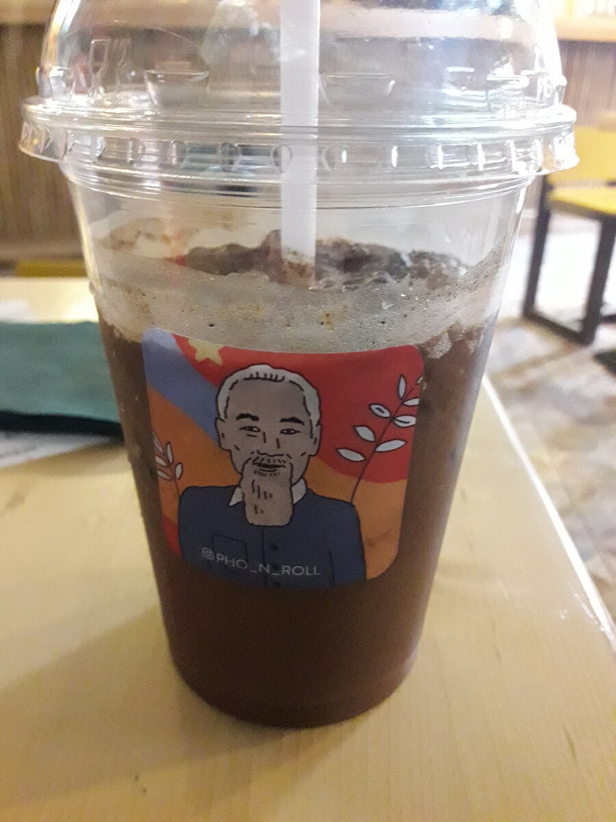 Следующим местом моего посещения на острове Новая Голландия стало кафе вьетнамской кухни Pho'n'roll. Честно говоря наслышан, наслышан только о прекрасном исполнении вьетнамской кухни. Я честно говоря фанат азиатской кухни, будь то японская, вьетнамская, тайская или любая другая. Но вот судьба занесла меня в маленький вьетнам в бутылке. Интерьер прекрасный, поработали на славу, урбан стиль в смеси с культурой вьетнама. Работники кухни не говорят по русски, может быть делают вид как в кафе Italy, а может быть действительно не говорят, пока не знаю, единсвенный русскоговорящий работает на кассе. Холодный кофе по-вьетнамски (150) Чудесный, освежающий напиток. В меру горьковатый, в меру сладкий, яркий вкус кофе, краш лед наверху. Наивкуснейшая штука, был бы пешком, взял бы еще одну порцию с собой. Фунчоза с креветками (480) Домашняя фунчоза пропитанная если я правильно понял смесью азиатских соусов. Лапша хоть и прожаренная, но до сих пор похрустывает, креветки одновременно мыгкие и хруст