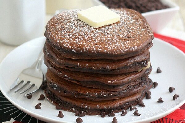 Американская Смешайте в большой миске муку, соль, разрыхлитель, какао и сахар. Влейте в мучную смесь молоко, ванильный экстракт и растительное масло. Если тесто получается слишком густым, добавьте еще молока. На этом этапе при желании можно добавить в тесто измельченный шоколад – вкус будет более насыщенным. Читайте также:Кекс с лимоном и изюмом Обжаривайте оладьи на разогретой сковороде с добавлением небольшого количества масла, пока они не подрумянятся. Подавайте со взбитыми сливками, медом или сливочным мороженым.