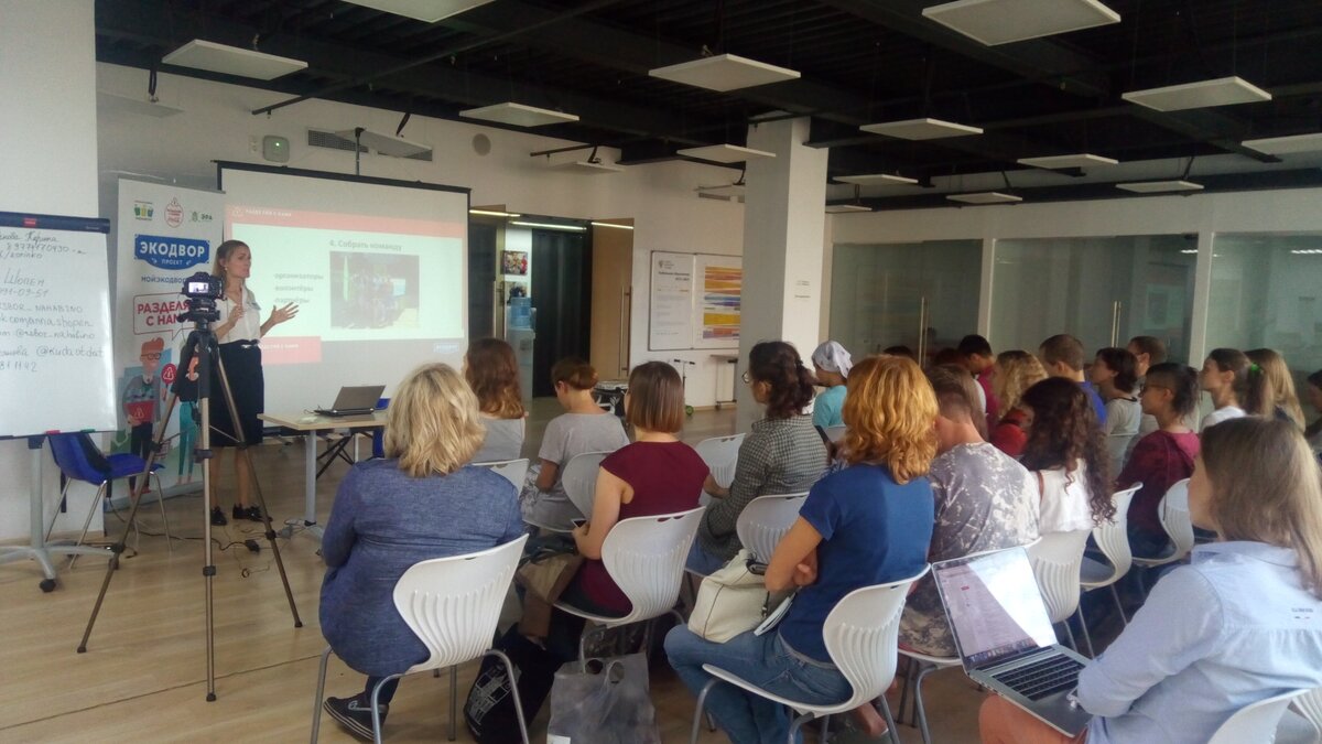 11 июля в Москве всероссийский проект “Экодвор” при поддержке Комитета общественных связей города Москвы провел мастер-класс для всех желающих наладить раздельный сбор отходов в своем дворе. Мастер-класс прошел в пространстве “Точка кипения” Агентства стратегических инициатив. Во встрече приняли участие более 40 жителей Москвы и Подмосковья, которые хотят добиться установки контейнеров для сбора вторсырья на придомовой территории, а также ряд московских муниципальных депутатов, продвигающих внедрение раздельного сбора отходов в столице. Ведущими мастер-класса выступили координатор проекта “Экодвор” в Зеленограде, директор АНО Клуб юных натуралистов Зеленограда Карина Смирнова и координатор проекта “Экодвор” в Нахабино Анна Шопен. Они рассказали об успешном опыте внедрения раздельного сбора в нескольких дворах Нахабино и Зеленограда силами жителей и поделились подробными инструкциями и советами, как это делать. “Один из самых мотивирующих и ярких способов вовлечь широкий круг л