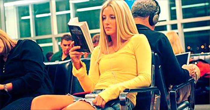 Молодая девушка ждала свой рейс в зале ожидания в большом аэропорту. Так как ей нужно было долго ждать, она решила купить книгу и пачку печенья, чтобы перекусить. Она села в кресло в VIP-зале аэропорта, чтобы отдохнуть и спокойно почитать.