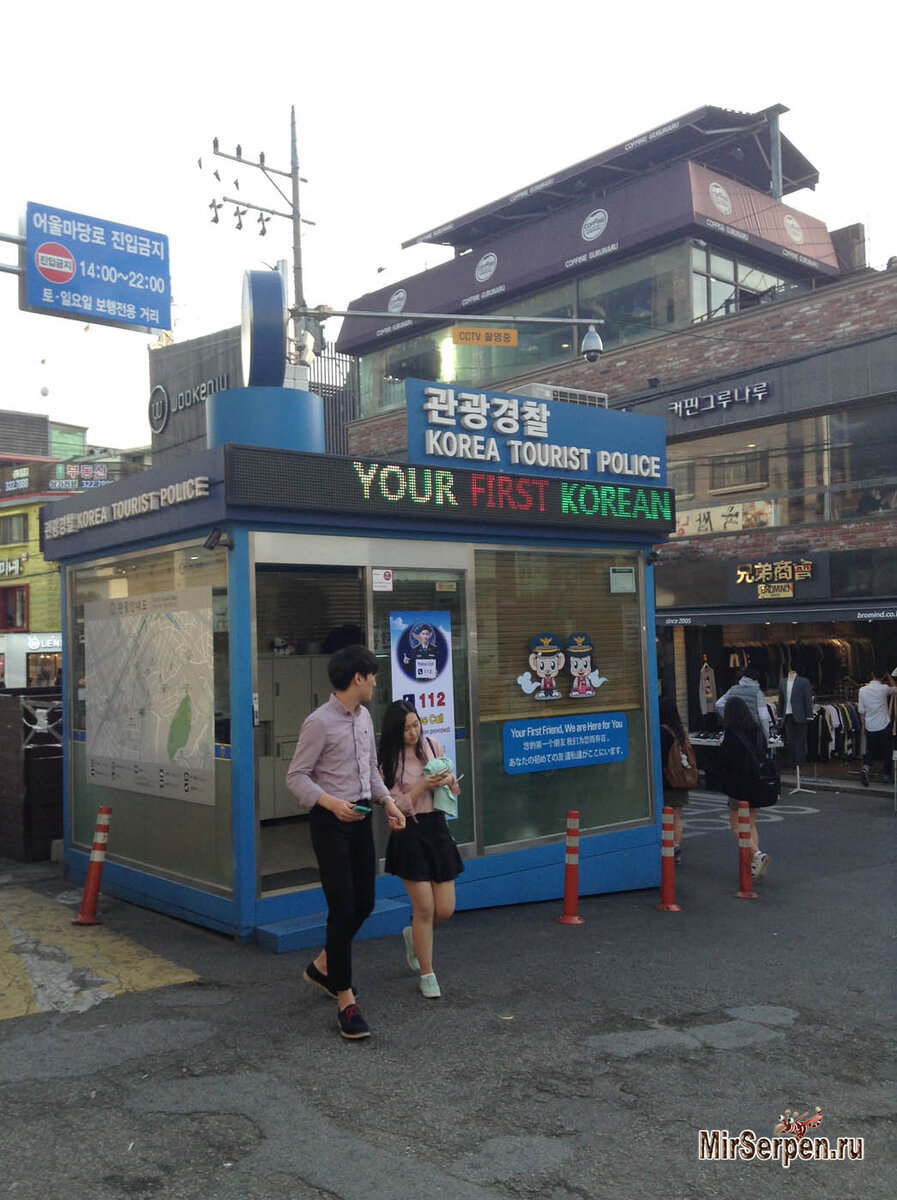 Потом понял, что в Сеуле навигаторы часто показывают очень приблизительное местоположение - нужно привыкнуть. Когда бродить кругами мне надоело, я решил подойти к полицейским, которые в переулочке стояли возле своей машины.