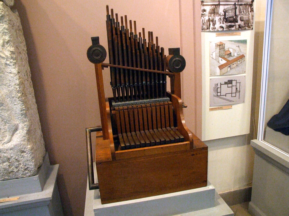 На фото — реконструкция античного органа из Аквинкума (современный Будапешт). Третий век нашей эры, клавиши в наличии.