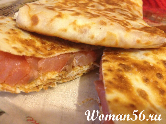 Замечательной праздничной закуской являются блины с семгой. Рецепт их приготовления на удивление прост, однако, не смотря на всю доступность и легкость исполнения, это блюдо занимает почетное место среди самых изысканных кушаний. Ингредиенты рецепта: Блины с семгой. Рецепт. Приготовление: Для приготовления блинов смешайте в глубокой миске молоко, яйца, сахар, растительное масло, соль, сахар по вкусу, муку. Муку добавляем «на глаз», понемногу, так, чтобы получилось жидкое тесто. Как следует разогрейте сковороду, затем уменьшите огонь до среднего и начинайте жарить блины. С каждой стороны блины следует обжаривать около двух минут, до появления румяного цвета. Чтобы блины не были сухими, их необходимо смазывать сливочным маслом. Теперь пришла очередь наполнять блины начинкой. Для этого нарежьте красную рыбу кусочками. В центр каждого блина уложите немного нарезанного рыбного филе. Если вы любите красную рыбу и блюда из нее, то вам полезно будет узнать, как солить семгу в до