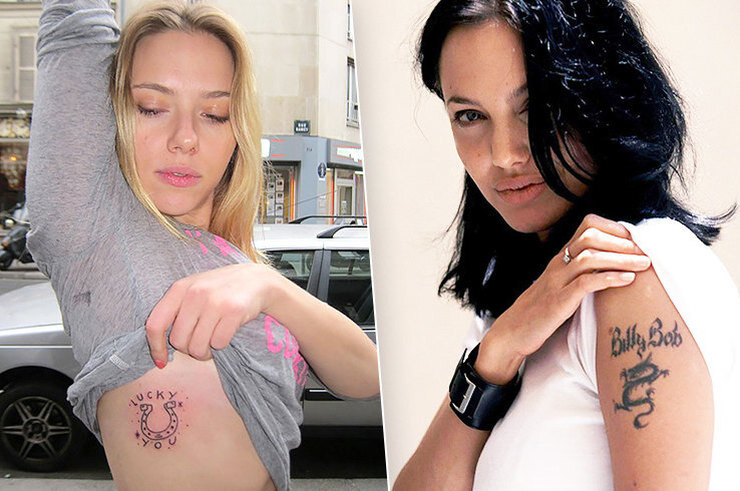Сегодня можно по по пальцам перечесть людей, у которых нет татуировки. Еще большее количество хотят сделать тату. Звёзды тут не исключение, но как и все остальные, они не задумываются о неприятных последствиях или пренебрегают ими. Мы написали эту статью, чтобы продемонстрировать как ошиблись знаменитости с выбором рисунка на всю жизнь. Анджелина Джоли Все понимают, что рисовать на теле тату своего парня - дурацкая затея. Но Джоли поддалась страсти и сделала тату с именем своего партнёра - Билли Боба. Как и следовало ожидать, пара скоро распалась. Так как красоваться на публике с именем бывшего не хочется, актриса изменила его на географические координаты мест, где родила своих шестерых детей.. Джонни Депп Джонни наступил на те же грабли. На плече набил тату с именем возлюбленной - "Winona Forever" В переводе это значит Виона навсегда. После расставания, " Winona" чудесным образом превратилась в "Wino". Мелани Гриффит Бывшая супруга Антонио Бандераса тоже сделала татуировку с