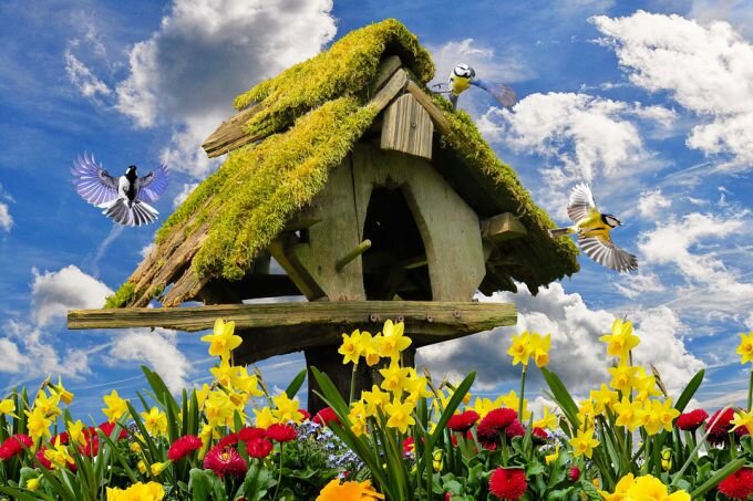 Если бюджет трещит по швам, то огорчаться не нужно. Многие современные фигуры и элементы дизайна можно легко заменить какими-то старыми и ненужными вещами. Прекрасно подойдут лесные коряги или колёса от старой телеги. На любом участке и в любой квартире найдутся такие предметы. Это могут быть и старые часы, и старая швейная машинка, и часть старой кровати или даже утюг с углями. Ну а некоторые садовые фигуры можно легко сделать самостоятельно.