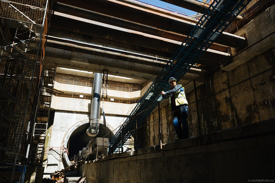 Пока мы все занимаемся своими делами, «Виктория» копает. Это тоннелепроходческий щит большого диаметра, который ведет проходку от будущей станции «Окская улица» в сторону «Нижегородской улицы». Вместо классической щитовой проходки в два тоннеля, на новой ветке метро ведется строительство «мадридским методом», когда в одном 10-метровом тоннеле будут проложены сразу два железнодорожных пути для движения поездов в обоих направлениях.