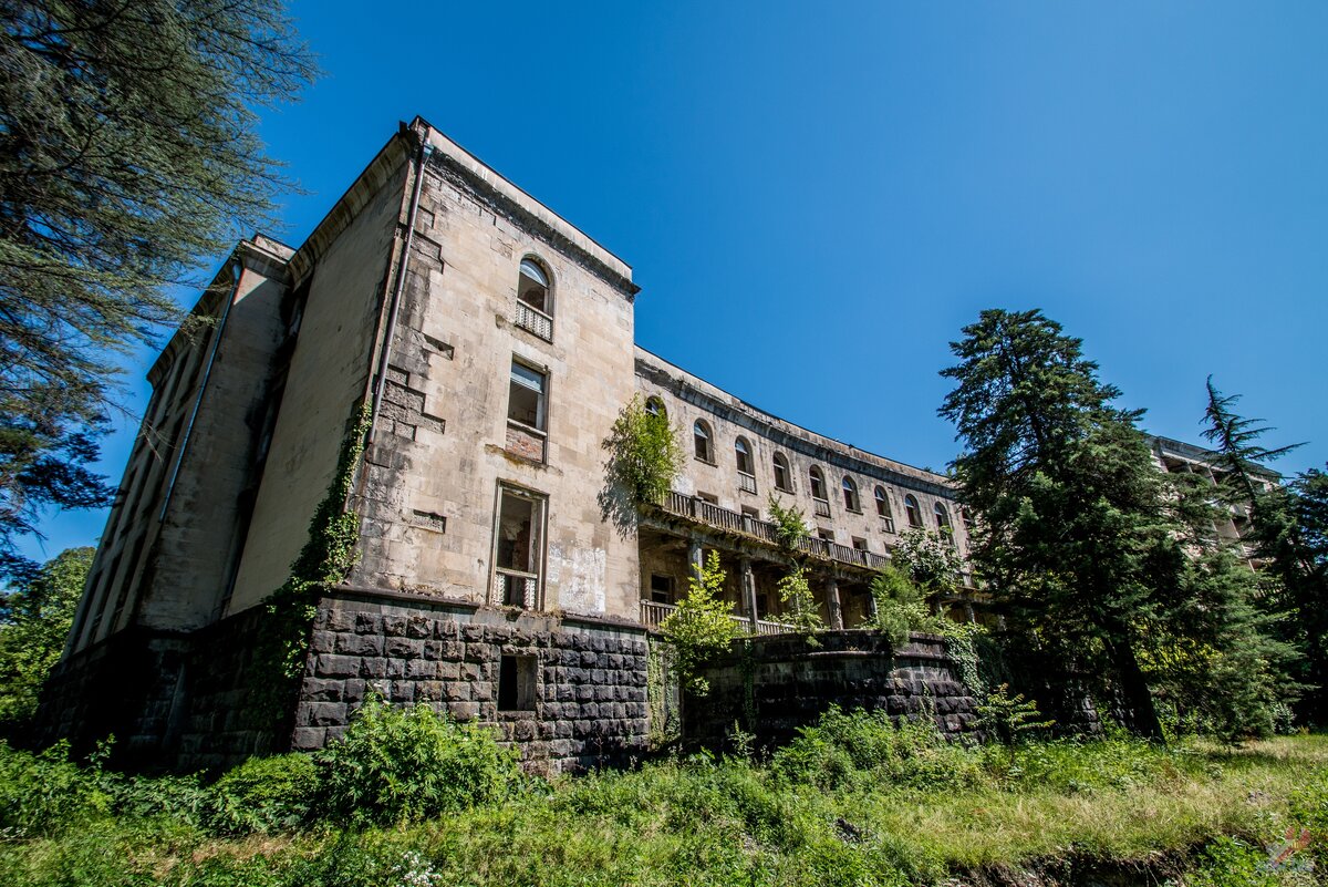 Некогда прекрасные санатории и пансионаты лежат в руинах и заброшены. Туристический поток постепенно восстанавливается, но его явно не достаточно для спасения изрядно разрушенных зданий.