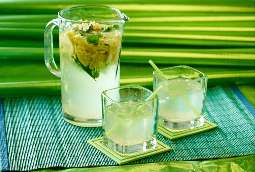 • 1 лайм, тонко нарезанный. Метод: 1. Налейте, сок лайма и имбирно-лаймовый сироп в охлажденном в стеклянный кувшин емкостью 680-910 мл. Добавьте лед. Медленно влейте содовую. Слегка помните мяту руками, добавьте в кувшин с кусочками лайма и перемешайте. 2. Подавайте в охлажденных стаканах коллинс или высоких бокалах, наполненных льдом. Украсьте мятой. Имбирно-лаймовый сироп Пикантный сироп можно также использовать для травяного чая или цитрусового имбирного эля, смешанного с содовой и капелькой