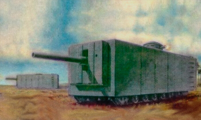 «Танк Менделеева» – первый в России и один из первых в мире проект танка. Он был разработан в 1911-1915 годах сыном известного русского химика Дмитрия Ивановича Менделеева – Василием Дмитриевичем Менделеевым, который по профессии был инженером-кораблестроителем. Танк Менделеева или как его ещё называют «Бронированный автомобиль Менделеева» по праву считается первым в мире сверхтяжёлым танком. Его огневая мощь и броня не имели аналогов на то время. Экипаж из восьми человек защищала 150-ти миллиметровая лобовая броня и 100-та миллиметровая броня по бокам и с кормы. Крыша танка имела броню в 76 мм. Такие показатели позволяли выдержать попадание 152,4-милеметрового бронебойного снаряда. В башне танка был установлен пулемёт «Максим», а основным калибром была 120-ти миллиметровая морская пушка Канэ, которая могла стрелять только вперёд, так как не имела поворотного механизма. Масса танка была 173 тонны. А 250-тисильный двигатель был взят от подводной лодки. P.S. К сожалению Танк Менделеева