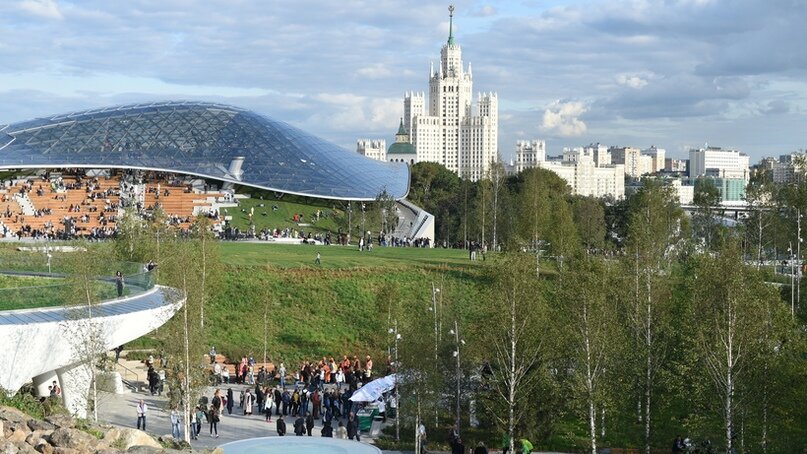 Знакомство с парком для меня началось с очень необычного и весьма уникального места — концертного зала «Зарядье», на который в числе первых удалось посмотреть и мне, да не просто посмотреть а пройтись по нему с подробной и интересной экскурсией.