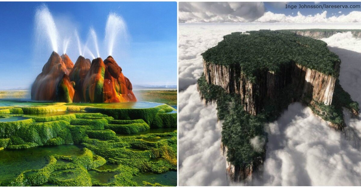 2. Горы Тяньцзи, Китай. 3. Флай (гейзер), Невада, США.