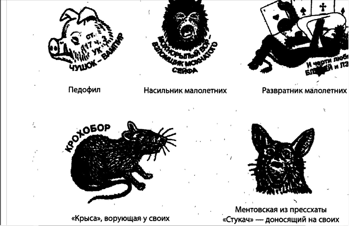 В данной статье мы рассмотрим какие именно бывают татуировки, где они набиваются, что означают и кто может их набивать. Для начала следует рассмотреть, куда же именно осужденные набивают себе татуировки. Для этого воспользуемся своеобразной картой нанесения наколок Наколки подразделяются на несколько видов: 1) Личностно-установочные - раскрывают черты биографии татуированного, страсть к определенному роду деятельности. 2) Информационно-иерархические - показывают какой именно ранг осужденный занимает в иерархии осужденных: 3) Памятные татуировки - наносятся для запечатления какого либо значимого события. 4) Профессиональные татуировки- обозначают принадлежность к определенной работе. 5) Позорная татуировка Если вы были достаточно внимательны и запомнили кого называют чушками-вампирами, то наверняка данная статья для вас оказалась познавательной, или по крайней мере забавной. Еще больше информации о местах лишения свободы вы найдете на моем канале.