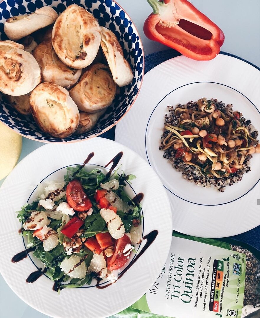 Киноа, салат сыром сиртаки и пирожочки из слоенного теста!