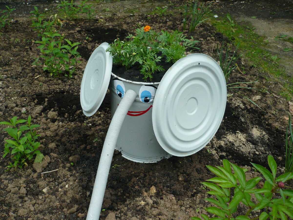 Знакомьтесь, это Слоник-Бутоник! Первый из нашего зоопарка. Мы со Светой обнаружили на складе целый комплект старых бачков. Кто и когда, до какой революции, их туда закинул, неизвестно, но дело он сделал хорошее, нам со Светой крайне понравились запасы этого товариСЧА))) Правда, бачки, пришлось красить какой-то ядовитой краской. Но это, согласитесь, мелочи творческого процесса. В итоге вот он, первый слон нашего будущего слоновника. Уточняю, что и крышки и сам хоботок прикреплены проволочкой. Самое главное, сделать доброе лицо персонажу. Думаю, нам это удалось.
