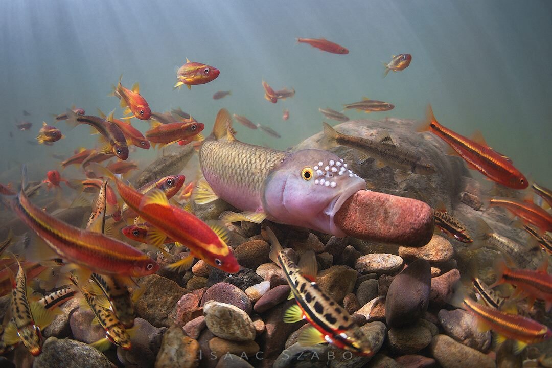 Рыба строит гнездо из камней, ручей в западной Вирджинии, фото Isaac Szabo