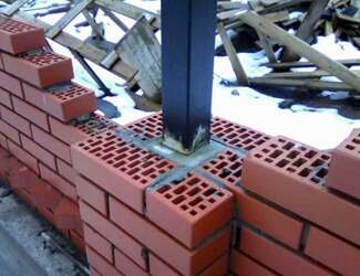 9. Забутовку пространства между стержнем и кирпичом следует производить на каждом ряду.