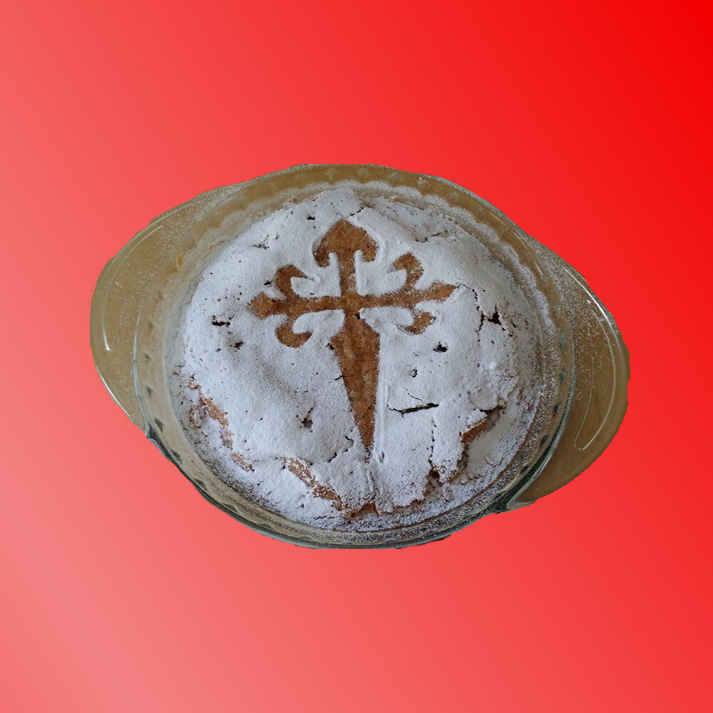 Миндальный торт «Сантьяго» придумали в Сантьяго-де-Компостела, столице испанского региона Галисия. Он был назван в честь апостола Сантьяго (Святого Джеймса), святого покровителя Испании. В настоящее время торт получил широкое распространение и его можно встретить в любой части страны. Считается, что десерт появился в средние века, и в то время был очень дорогим из-за высокой цены миндаля. Торт "La Tarta de Santiago" - традиционный десерт галисийской кухни. Рецепт состоит в основном из миндаля, сахара и яиц и не содержит глютена. Очень просто готовится но он очень вкусный и нежный. Ингредиенты: 5 яиц 250 г сахара 250 г молотого миндаля цедра одного лимона чайная ложка корицы сахарная пудра (для украшения) Приготовление: Поместите сахар и молотый миндаль в миску и перемешайте. Добавьте в массу яйца по одному, взбивая всю смесь энергично, пока не получится масса однородной текстуры. Добавьте лимонную цедру и корицу и смешайте всею. Смажьте маслом или маргарином круглую форму диам