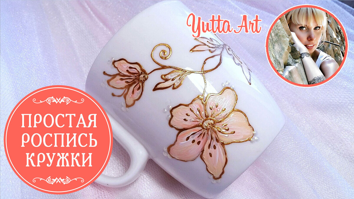 Если вы только начинаете учится росписи, попробуйте повторить этот простой рисунок. Он не сложен для новичка, но довольно красив. Для работы понадобится : - Белая кружка; - Жидкость для обезжиривания; - Контур по стеклу и другим твердым поверхностям «Золото»; - Контуры по стеклу и другим твердым поверхностям «Белый» и «Оранжевый»; - Тонкая кисть; - Контурный гель «Золотистый»; - Лак акриловый универсальный глянцевый.