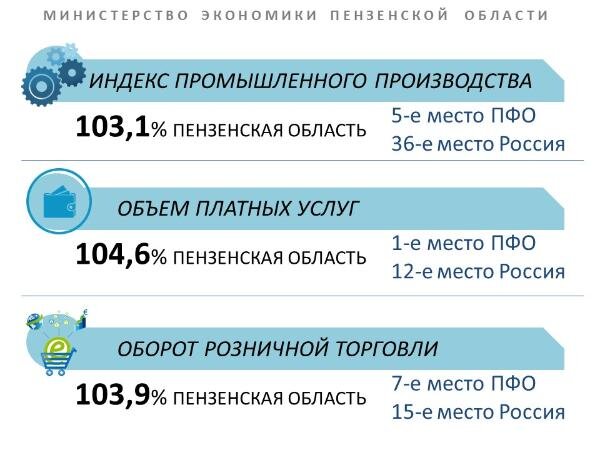 Пензенская область за пять месяцев этого года сохранила позиции по самой низкой стоимости минимального набора продуктов и осталась на третьем месте в ПФО. Среди регионов России область по этому показателю занимает шестое место. Об этом в понедельник, 16 июля, сообщили в пресс-службе регионального министерства экономики. Сейчас стоимость минимального набора продуктов составляет 3348,8 рублей. Впереди только Республика Мордовия с 3301,9 рублей и Саратовская область - 3267,9 рублей. Также регион стал пятым в ПФО по промышленному производству. Отмечается рост производства напитков, одежды и лекарств. Устойчивый рост продемонстрировало и сельское хозяйство. Аграрии за пять месяцев произвели продукции на 20 млрд рублей. Регион стал лидером в ПФО по темпам роста объемов платных услуг и занял 12 место в стране с показателем 104,6%.Ранее регион был на 7 месте среди ПФО и 15-м в России. «Средняя заработная плата за январь-апрель увеличилась на 10,5% и составила 25 422 рублей. По темпам роста за