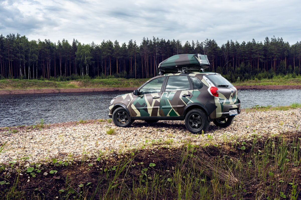 Новую версию пятидверки создали на основе пожеланий поклонников бренда. Хобби подавляющего большинства владельцев автомобилей Datsun в России — рыбалка и путешествия. И как только это стало известно представителям компании, они тут же решили построить экспериментальный образец хэтчбека mi-DO. Приключенческую версию сделали на базе модификации с 8-клапанным двигателем 1.6 и механической коробкой передач. У хэтчбека увеличили дорожный просвет до 180 мм, колеса обули в шины Michelin Cross Climate 185/65 R15 95V XL. Передаточное число главной пары изменили (4.13 вместо 3.9), так что дозировать тягу стало удобнее, особенно на малых скоростях на бездорожье. Днище автомобиля закрыли стальным щитом толщиной 4 мм. Кузов оклеен защитным покрытием Raptor, стойким к механическим повреждениям. На крыше установлены дополнительные источники света. В оснащение входят буксировочный и рывковый тросы, шанцевый инструмент и даже тент с боковыми стенками. В багажнике есть специальные отсеки для хра