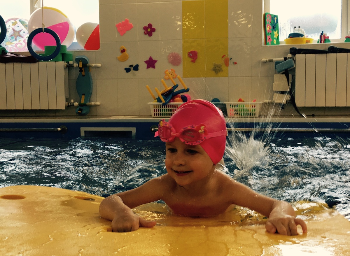Полина очень любит воду во всех ее проявлениях - ванна, душ, тазик, лужи, море... Поэтому, когда мы в три года решили отдать Ее в бассейн - восторгу не было предела. Занимаемся мы индивидуально с тренером, потому что три года ещё рано для групповых занятий. В бассейне они делают различные упражнения на укрепление мышц, учатся плавать с различными плавательными аксессуарами, учатся задерживать дыхание и нырять. Все проходит в форме игры, все только на позитиве. В таком возрасте главное не настаивать, если что-то не получается, а ждать, пока получится, возможно ждать долго. Но торопиться-то в таком возрасте и некуда.))) Несмотря на нашу любовь к воде, нырять нам ну никак не хотелось, а если в нос попадала вода, так и совсем могли расстроиться. Я даже начала думать, что это не наше, пусть просто плавает. И как только я так подумала - на следующее занятие мы заныряли.)) Такая вот наша история знакомства с бассейном. Надо сказать, что не все детки с удовольствием лезут в воду. Некоторы