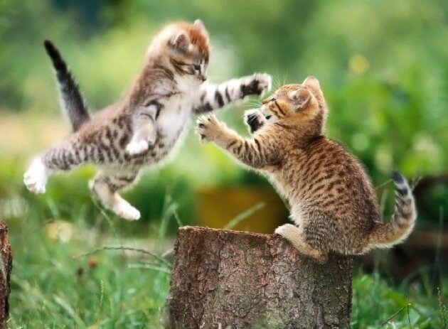 У меня два сына-близнеца 5-ти лет. Тима и Дима, в общем-то, очень дружны. Жить долго врозь не могут. Как-то Димка серьезно заболел, и нам с ним пришлось лечь в больницу. Тимка так переживал, что на следующее утро и у него поднялась высокая температура. Никаких симптомов простуды или другого заболевания у него не было, но пришлось госпитализировать и его. И Димка рядом с братом выздоравливал быстрее. А вот дома они постоянно устраивают потасовки. Наша кошка родила котят. Они подросли и стали такими забавными! Мы умиляемся, наблюдая, как они играют. Два котенка ведут себя точно так же, как наши сыночки. Играют, играют вместе, потом вдруг набрасываются друг на друга, и, покатились в схватке. В ход идут и зубы, и коготки. Рычат, как маленькие тигрята. Потом бегут к маме-кошке, чтобы она их пожалела. - Вот смотрите, - говорим мы своим близнецам, - вы своим примером преподаете дурной урок котятам. А ведь мы уже подыскиваем для них хороших хозяев. Кто же захочет таких драчунов у нас брать?