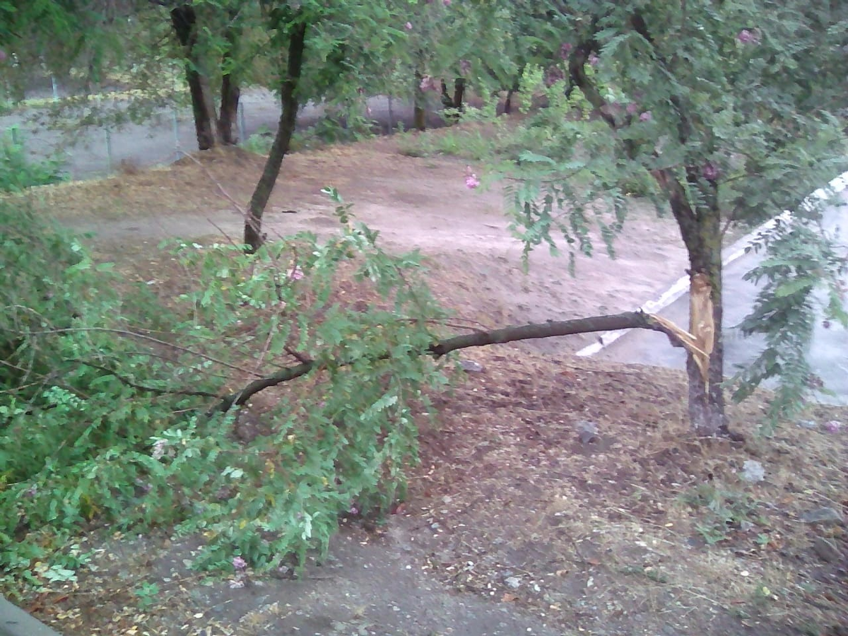 В эту бурю у нас в поселке молоденькое деревце раскололось. Причина в том, что его неправильно сформировали. Оставляя основные стволы, пожалели и не убрали одну веточку, которая потом не выдержала бурю и упала под своей тяжестью.