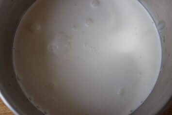 Взбейте его миксером на высокой скорости до пышности. У меня на это уходит не более 2-х минут.