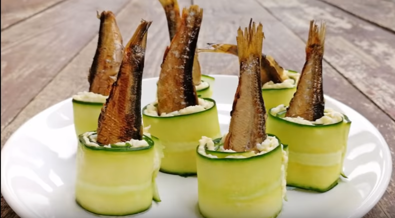 Легкие и очень аппетитные рулетики из огурца и шпрот! Идеальны для празников и фуршетов!